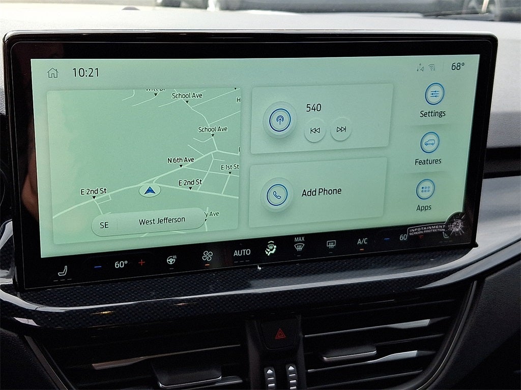 This Vehicle Includes the Following Options: AWD, 2.91 Axle Ratio, 4-Wheel Disc Brakes, 6 Speakers, ABS brakes, Air Conditioning, Alloy wheels, AM/FM radio: SiriusXM, AM/FM Stereo, Auto High-beam Headlights, Auto-dimming Rear-View mirror, Automatic temperature control, Brake assist, Bumpers: body-color, Compass, Delay-off headlights, Driver door bin, Driver vanity mirror, Dual front impact airbags, Dual front side impact airbags, Electronic Fuel Door Release, Electronic Stability Control, Emergency communication system: SYNC 4 911 Assist, FordPass Connect, Four wheel independent suspension, Front anti-roll bar, Front Bucket Seats, Front Center Armrest, Front dual zone A/C, Front fog lights, Front reading lights, Fully automatic headlights, Heated door mirrors, Heated front seats, Heated steering wheel, Heated Vinyl/Cloth Front Sport Contour Bucket Seats, Illuminated entry, Knee airbag, Low tire pressure warning, Memory seat, Navigation system: Connected Navigation, Neutral Towing Capability, Occupant sensing airbag, Outside temperature display, Overhead airbag, Overhead console, Panic alarm, Passenger door bin, Passenger vanity mirror, Pedestrian Alert Sounder, Power door mirrors, Power driver seat, Power Liftgate, Power passenger seat, Power steering, Power windows, Radio data system, Rear anti-roll bar, Rear reading lights, Rear seat center armrest, Rear window defroster, Rear window wiper, Remote keyless entry, Security system, Speed control, Speed-sensing steering, Speed-Sensitive Wipers, Split folding rear seat, Spoiler, Sport steering wheel, Steering wheel mounted audio controls, SYNC 4 w/Enhanced Voice Recognition, Tachometer, Telescoping steering wheel, Tilt steering wheel, Traction control, Trip computer, Variably intermittent wipers, and Wheels: 19 Machined-Face Ebony-Painted Aluminum.