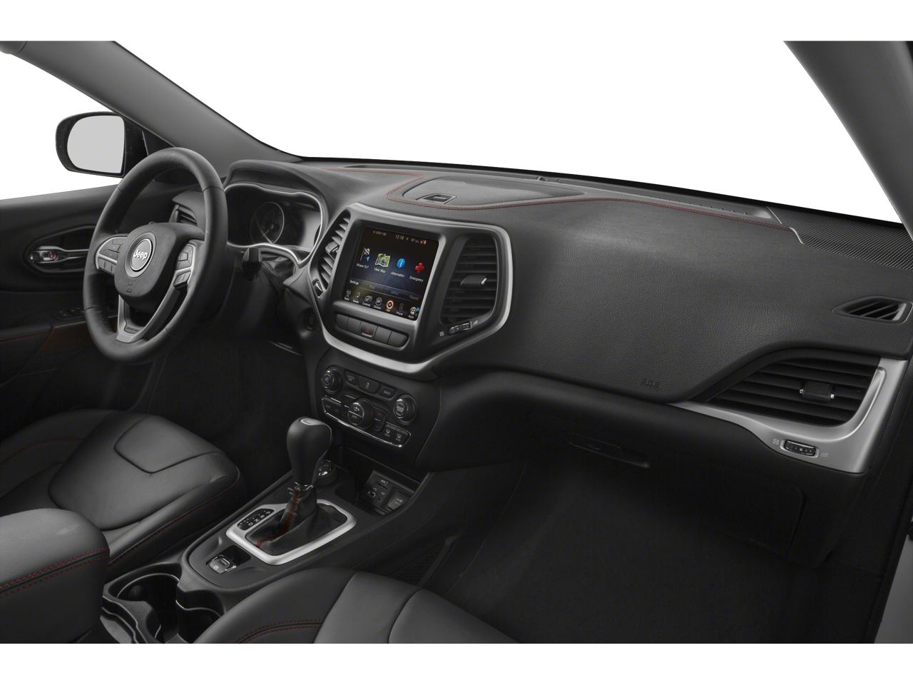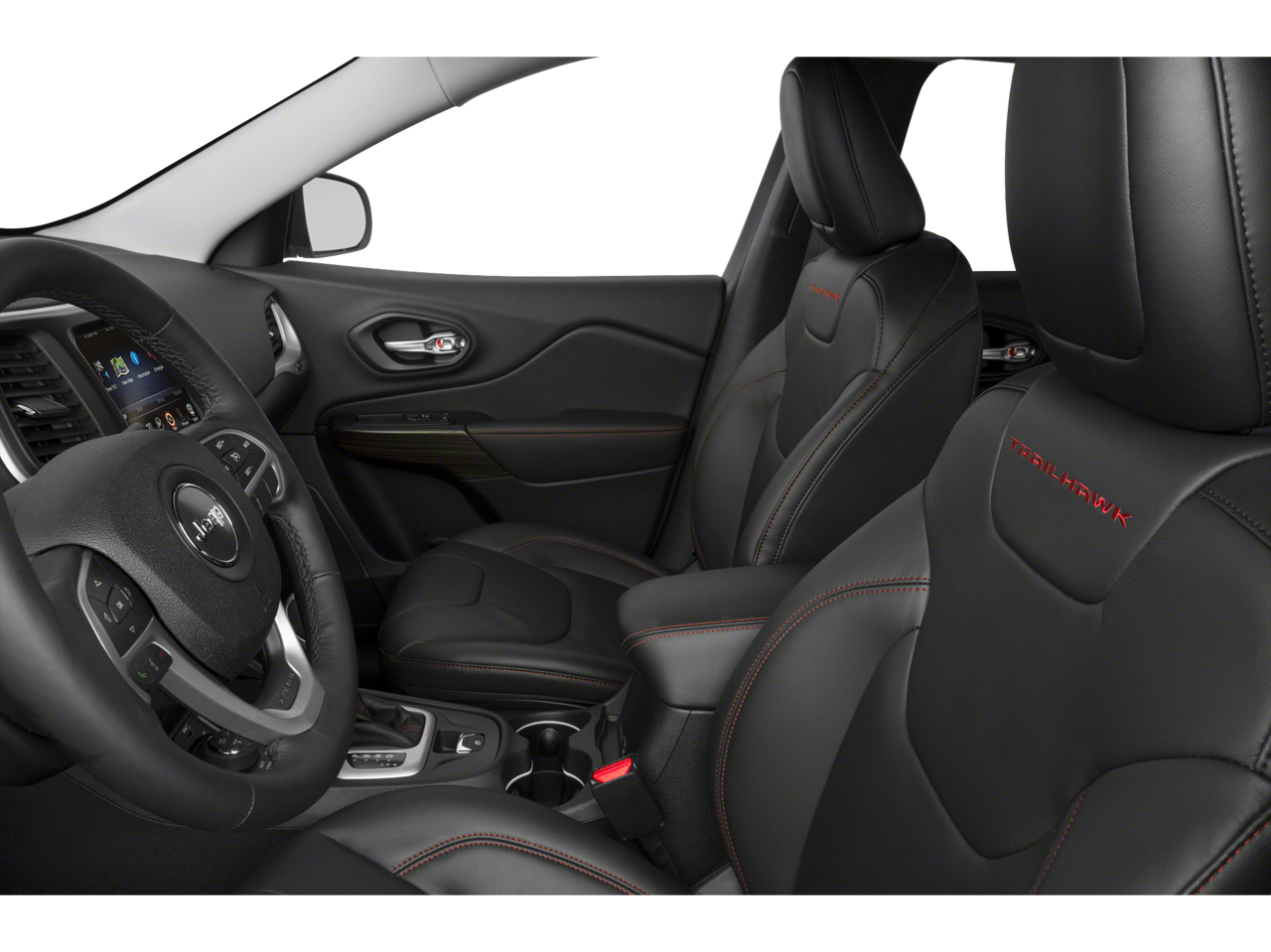 Step inside and experience the refined comfort of the Trailhawk's interior, featuring a leather-wrapped steering wheel, premium cloth/leather/vinyl bucket seats, and a spacious cabin that can accommodate all your adventure gear. The split-folding rear seats provide versatility, while the integrated voice command with Bluetooth® and the premium audio system ensure you stay connected and entertained on every journey.