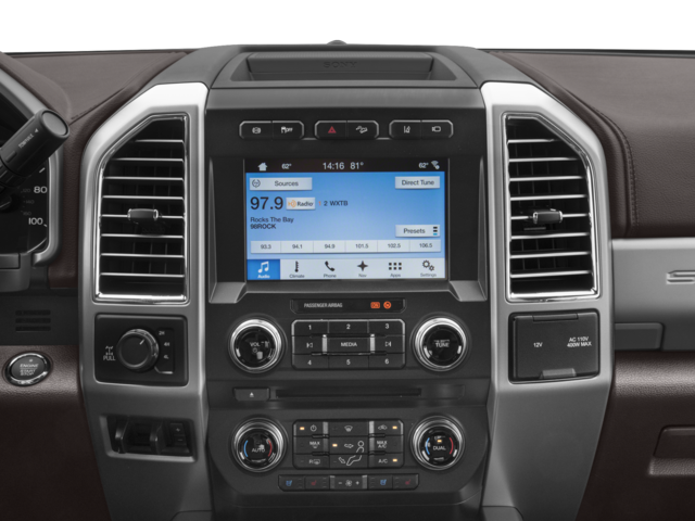This Vehicle Includes the Following Options: FX4 Off-Road Package, GVWR: 10,000 lb Payload Package, King Ranch Ultimate Package (BLIS Blind Spot Information System, Power-Deployable Running Boards, Quad Beam LED Headlamps & LED Taillamps, Tailgate Step & Handle, and Twin Panel Power Moonroof), Order Code 700A, 4WD, 10 Speakers, 110V/400W Outlet, 4-Wheel Disc Brakes, ABS brakes, Adjustable pedals, Air Conditioning, Alloy wheels, AM/FM radio: SiriusXM, Auto High-beam Headlights, Auto tilt-away steering wheel, Auto-dimming Rear-View mirror, Automatic temperature control, Brake assist, CD player, Compass, Delay-off headlights, Driver door bin, Driver vanity mirror, Dual front impact airbags, Dual front side impact airbags, Electronic Stability Control, Emergency communication system: SYNC 3 911 Assist, Engine Block Heater, Exterior Parking Camera Rear, Flow-Through Console, Front anti-roll bar, Front Bucket Seats, Front Center Armrest, Front dual zone A/C, Front fog lights, Front reading lights, Fully automatic headlights, Garage door transmitter, Heated door mirrors, Heated front seats, Heated Rear Seats, Heated steering wheel, Illuminated entry, Illuminated running boards, Leather steering wheel, Low tire pressure warning, Memory seat, Navigation System, Outside temperature display, Overhead airbag, Overhead console, Panic alarm, Passenger door bin, Passenger vanity mirror, Pedal memory, Power door mirrors, Power driver seat, Power passenger seat, Power steering, Power windows, Radio data system, Radio: Premium Sony Audio w/Single-CD/MP3 Player, Rain sensing wipers, Rear CHMSL Camera, Rear Parking Sensors, Rear reading lights, Rear seat center armrest, Rear step bumper, Rear window defroster, Remote keyless entry, Security system, SiriusXM Radio, Speed control, Split folding rear seat, Steering wheel memory, Steering wheel mounted A/C controls, Steering wheel mounted audio controls, SYNC 3 Communications & Entertainment System, Tachometer, Telescoping steering wheel, Tilt steering wheel, Traction control, Trip computer, Turn signal indicator mirrors, Ultimate Trailer Tow Camera System, Unique King Ranch Leather 40/Console/40 Front Seats, Variably intermittent wipers, Ventilated front seats, Wheels: 18 Bright Machined Cast Aluminum, and Wheels: 20 Bright Machined Cast Aluminum.