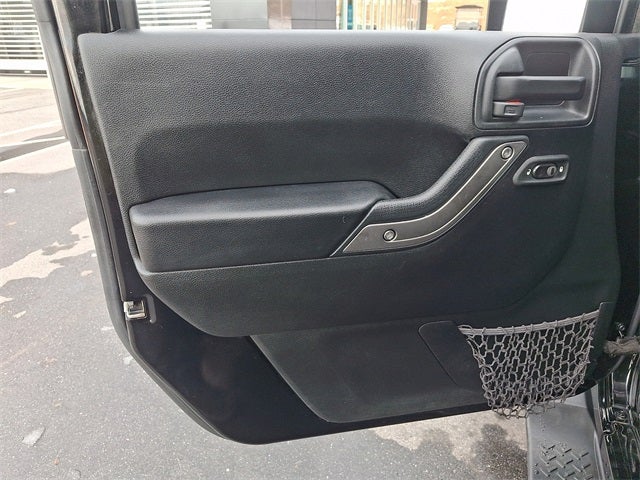 THIS VEHICLE INCLUDES THE FOLLOWING FEATURES AND OPTIONS: Connectivity Group (Remote USB Port, Tire Pressure Monitoring Display, Uconnect Voice Command w/Bluetooth®, and Vehicle Information Center), Quick Order Package 23C, Quick Order Package 24S (17 x 7.5 Aluminum Wheels, Auto-Dimming Mirror w/Reading Lamp, Chrome/Leather Wrapped Shift Knob, Deep Tint Sunscreen Windows, Front 1-Touch Down Power Windows, Leather Wrapped Steering Wheel, Power Convenience Group, Power Heated Mirrors, Power Locks, Remote Keyless Entry, and Security Alarm), 1-Yr SiriusXM Radio Service, 16 x 7.0 Luxury Styled Steel Wheels, 3.21 Rear Axle Ratio, 4-Wheel Disc Brakes, 8 Speakers, ABS brakes, Air Conditioning, AM/FM radio, Brake assist, CD player, Cloth Seats w/Adjustable Head Restraints, Compass, Driver door bin, Driver vanity mirror, Dual front impact airbags, Electronic Stability Control, Front anti-roll bar, Front Bucket Seats, Front Center Armrest w/Storage, Front fog lights, Integrated roll-over protection, Low tire pressure warning, Normal Duty Suspension, Occupant sensing airbag, Outside temperature display, Passenger door bin, Passenger vanity mirror, Power steering, Premium Black Sunrider Soft Top, Radio: 130, Rear anti-roll bar, SIRIUS Satellite Radio, Speed control, Split folding rear seat, Steering wheel mounted audio controls, Tachometer, Tilt steering wheel, Traction control, Trip computer, and Variably intermittent wipers.