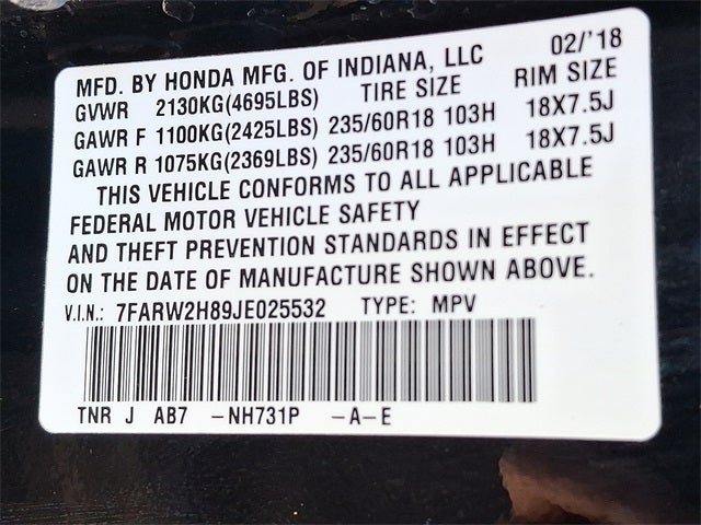 - Tires: P235/60R18 103H All-Season