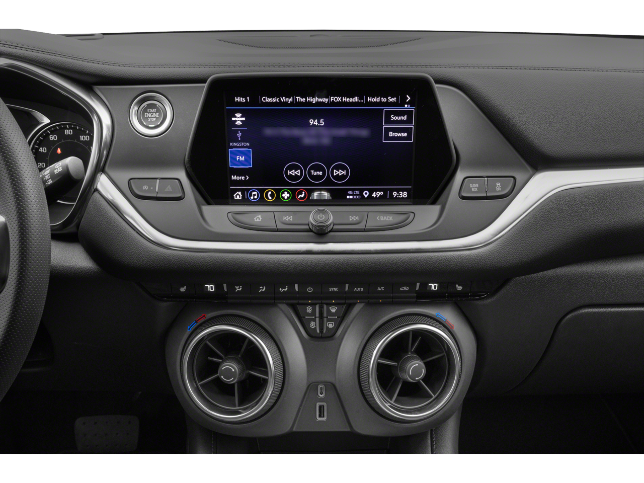 - USB data ports, 2, one type-A and one type-C includes SD Card Reader, auxiliary input jack, located within front center storage bin