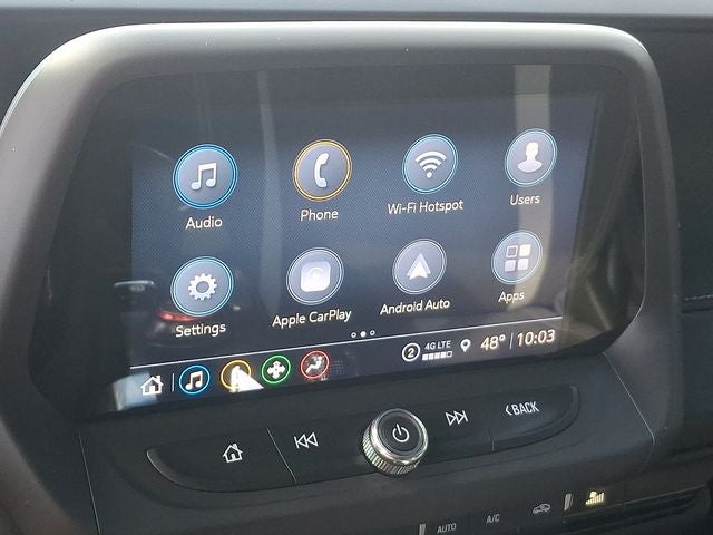 - Audio system, Chevrolet Infotainment 3 Plus system, 8" diagonal HD color touchscreen, AM/FM stereo Bluetooth® audio streaming for 2 active devices, Apple CarPlay and Android Auto capable, voice recognition, in-vehicle apps, cloud connected personalization for select infotainment and vehicle settings. Subscription required for enhanced and connected services after trial period.