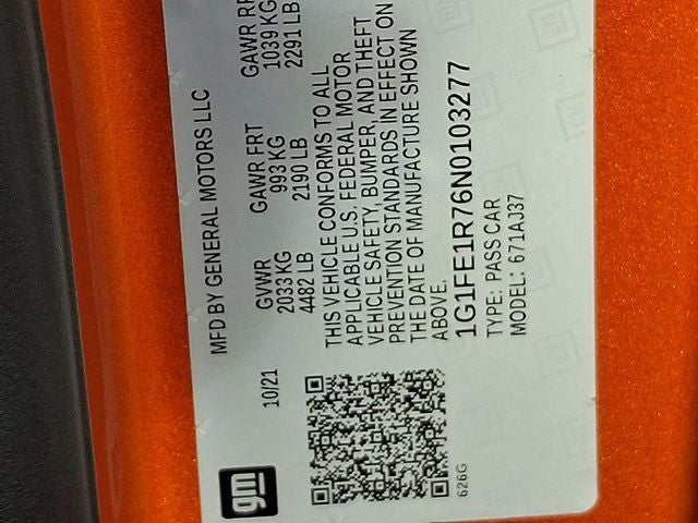 THIS VEHICLE INCLUDES THE FOLLOWING FEATURES AND OPTIONS: Performance Copper-Free Brake System (Brembo 4-Wheel Performance Disc Brakes), Preferred Equipment Group 1SS, 4-Wheel Disc Brakes, 6 Speakers, 6-Speaker Audio System Feature, 6-Way Power Front Passenger Seat Adjuster, 8-Way Power Driver Seat Adjuster, ABS brakes, Air Conditioning, Alloy wheels, AM/FM radio: SiriusXM with 360L, Apple CarPlay/Android Auto, Automatic temperature control, Bluetooth® For Phone, Brake assist, Bumpers: body-color, Cloth Seat Trim, Compass, Decklid-Mounted Lip Spoiler, Delay-off headlights, Driver door bin, Driver vanity mirror, Dual front impact airbags, Dual front side impact airbags, Electronic Stability Control, Exterior Parking Camera Rear, Four wheel independent suspension, Front anti-roll bar, Front Bucket Seats, Front Center Armrest, Front License Plate Bracket, Front reading lights, Front Sport Bucket Seats, Fully automatic headlights, Illuminated entry, Knee airbag, Leather Shift Knob, Low tire pressure warning, Magnetic Ride Control, Occupant sensing airbag, Overhead airbag, Panic alarm, Passenger door bin, Passenger vanity mirror, Power door mirrors, Power driver seat, Power passenger seat, Power steering, Power windows, Premium audio system: Chevrolet Infotainment System, Radio data system, Radio: Chevrolet Infotainment 3 Plus System, Rear anti-roll bar, Rear window defroster, Remote keyless entry, Satin Black Blade Spoiler (LPO), Security system, SiriusXM w/360L, Speed control, Speed-sensing steering, Spoiler, Steering wheel mounted audio controls, Tachometer, Telescoping steering wheel, Tilt steering wheel, Traction control, Trip computer, Variably intermittent wipers, Voltmeter, Wheels: 20 x 8.5 Fr & 20 x 9.5 Rr 5-Spoke, and Wheels: 20 x 8.5 Fr & 20 x 9.5 Rr 5-Spoke Alum.