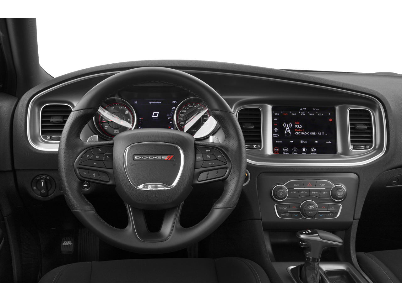 Exterior Color: Pitch Black Clearcoat – A deep, aggressive finish that enhances the Charger GT’s muscular lines and commanding presence.