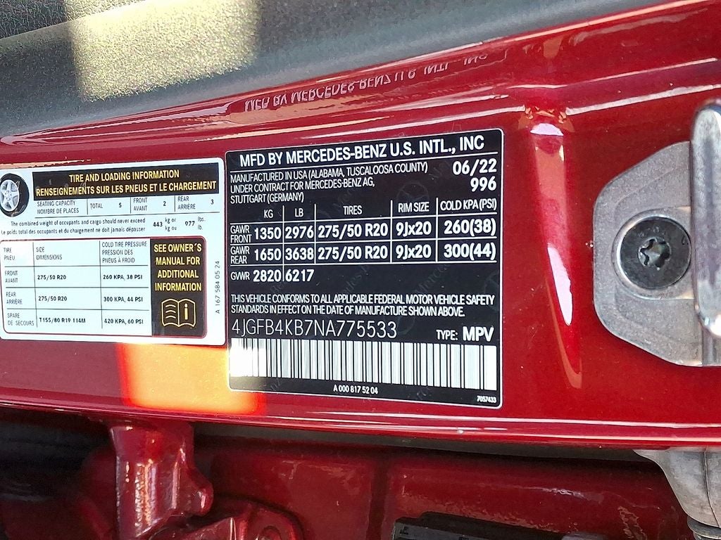 THIS VEHICLE INCLUDES THE FOLLOWING FEATURES AND OPTIONS: 3.69 Axle Ratio, 4-Wheel Disc Brakes, 8 Speakers, ABS brakes, Air Conditioning, Alloy wheels, AM/FM radio: SiriusXM, Anti-whiplash front head restraints, Apple CarPlay®/Android Auto®, Auto High-beam Headlights, Auto tilt-away steering wheel, Auto-dimming door mirrors, Auto-dimming Rear-View mirror, Automatic temperature control, Brake assist, Bumpers: body-color, Compass, Delay-off headlights, Driver door bin, Driver vanity mirror, Dual front impact airbags, Dual front side impact airbags, Electronic Stability Control, Emergency communication system: eCall Emergency System, Exterior Parking Camera Rear, Four wheel independent suspension, Front anti-roll bar, Front Bucket Seats, Front Center Armrest, Front dual zone A/C, Front reading lights, Fully automatic headlights, Garage door transmitter: HomeLink, Genuine wood console insert, Genuine wood dashboard insert, Genuine wood door panel insert, Heated door mirrors, Heated front seats, Heated Power Front Seats w/Driver Memory, Illuminated entry, Knee airbag, Leather steering wheel, Low tire pressure warning, MB-Tex Upholstery, Memory seat, Navigation system: MBUX, Occupant sensing airbag, Outside temperature display, Overhead airbag, Panic alarm, Passenger door bin, Passenger vanity mirror, Power adjustable front head restraints, Power door mirrors, Power driver seat, Power Liftgate, Power moonroof, Power passenger seat, Power steering, Power windows, Premium audio system: MBUX, Radio data system, Radio: 12.3 Media Display w/Touchscreen, Rain sensing wipers, Rear anti-roll bar, Rear fog lights, Rear reading lights, Rear seat center armrest, Rear window defroster, Rear window wiper, Remote keyless entry, Roof rack: rails only, Security system, Speed control, Speed-sensing steering, Speed-Sensitive Wipers, Split folding rear seat, Spoiler, Steering wheel memory, Steering wheel mounted audio controls, Tachometer, Telescoping steering wheel, Tilt steering wheel, Traction control, Trip computer, Turn signal indicator mirrors, Weather band radio, and Wheels: 19 Twin 5-Spoke. 19/26 City/Highway MPG