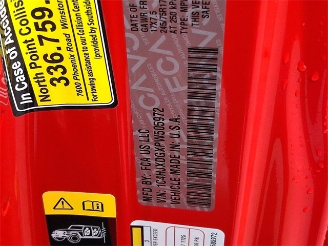 This Vehicle Includes the Following Options: Convenience Group (Universal Garage Door Opener), Quick Order Package 23S Sport S (Automatic Headlamps, Deep Tint Sunscreen Windows, Front 1-Touch Down Power Windows, Power Heated Mirrors, Premium Wrapped Steering Wheel, Remote Keyless Entry, Security Alarm, Speed Sensitive Power Locks, Sport S, Sun Visors w/Illuminated Vanity Mirrors, and Wheels: 17 x 7.5 Tech Silver Aluminum), Technology Group (2-Door Passive Entry, Front Door Locks, Air Conditioning w/Auto Temperature Control, Air Filtering, Cluster 7.0 TFT Color Display, and SiriusXM Satellite Radio), 3.45 Overall Top Gear Ratio, 4-Wheel Disc Brakes, 8 Speakers, ABS brakes, Air Conditioning, AM/FM radio, Apple CarPlay, Apple CarPlay/Android Auto, Aux Battery, Brake assist, Cloth Low-Back Bucket Seats, Compass, Delay-off headlights, Driver door bin, Driver vanity mirror, Dual front impact airbags, Dual front side impact airbags, Electronic Stability Control, Emergency communication system: SiriusXM Guardian, Engine Oil Cooler, Front anti-roll bar, Front Bucket Seats, Front Center Armrest w/Storage, Front fog lights, Front reading lights, Google Android Auto, GPS Antenna Input, Integrated Center Stack Radio, Integrated roll-over protection, Integrated Voice Command w/Bluetooth®, Low tire pressure warning, MOPAR All-Weather Floor Mats, Non-Lock Fuel Cap w/o Discriminator, Normal Duty Suspension, Occupant sensing airbag, Outside temperature display, ParkView Rear Back-Up Camera, Passenger door bin, Passenger vanity mirror, Power steering, Radio data system, Radio: Uconnect 4 w/7 Display, Rear anti-roll bar, Rear reading lights, Side Steps, Speed control, Split folding rear seat, Steering wheel mounted audio controls, Stop-Start Dual Battery System, Tachometer, Telescoping steering wheel, Tilt steering wheel, Traction control, Trip computer, USB Host Flip, Variably intermittent wipers, Wheels: 17 x 7.5 Black Steel Styled, and Wheels: 17 x 7.5 Tech Silver Aluminum (DISC)