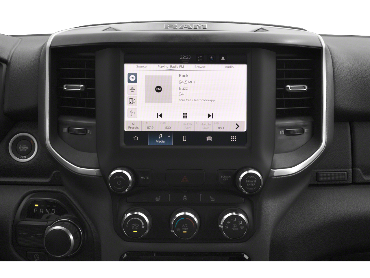 This Vehicle Includes the Following Options: Big Horn Level B Equipment Group (115V Auxiliary Power Outlet, 12 Touchscreen Display, 400W Inverter, 4G LTE Wi-Fi Hot Spot, 9 Amplified Speakers w/Subwoofer, Air Conditioning ATC w/Dual Zone Control, All R1 High Radios, All Radio Equipped Vehicles, Apple CarPlay, Auto-Dimming Exterior Driver Mirror, Auto-Dimming Rear-View Mirror, Black Exterior Mirrors, Black Premium Power Mirrors, Class IV Receiver Hitch, Cluster 7.0 TFT Color Display, Connected Travel & Traffic Services, Connectivity - US/Canada, Convex Wide-Angle Mirror Insert, Disassociated Touchscreen Display, Exterior Mirrors Courtesy Lamps, Exterior Mirrors w/Heating Element, Exterior Mirrors w/Supplemental Signals, For Details, Visit DriveUconnect.com, For More Info, Call 800-643-2112, Front Fog Lamps, Glove Box Lamp, Google Android Auto, GPS Antenna Input, GPS Navigation, HD Radio, Heated Front Seats, Heated Steering Wheel, Integrated Center Stack Radio, Integrated Voice Command w/Bluetooth®, LED Footwell Lighting, Media Hub w/2 Charge Only USBs, ParkSense Front/Rear Park Assist w/Stop, Power 2-Way Driver Lumbar Adjust, Power 8-Way Driver Seat, Power Adjustable Pedals, Power-Folding Mirrors, Radio: Uconnect 5 Nav w/12.0 Display, Rear Dome w/On/Off Switch Lamp, Rear Power Sliding Window, Rear Window Defroster, Remote Start System, Security Alarm, SiriusXM Radio Service, SiriusXM Satellite Radio, SiriusXM w/360L, Sun Visors w/Illuminated Vanity Mirrors, Universal Garage Door Opener, and USB Host Flip), Night Edition (3 Rear Seat Head Restraints, 4 Way Front Headrests, Accent Color Door Handles, Accent Color Premium Power Mirrors, Anti-Spin Differential Rear Axle, Black Exterior Truck Badging, Black Headlamp Bezels, Black Interior Accents, Black Painted Exterior Mirrors Caps, Body Color Front Bumper, Body Color Rear Bumper w/Step Pads, Bucket Seats, Center Console Parts Module, Deluxe Cloth Bucket Seats, Dual Exhaust w/Black Tips, Front Seat Back Map Pockets, Full Length Floor Console, Grille Surround 1 Black Texture 2 Black, Manual Adjust 4-Way Front Passenger Seat, RAM Grille Badge - Black, Rear 60/40 Folding Seat, and Wheels: 20 x 9.0 Premium Paint/Polished), Quick Order Package 23Z Big Horn (Big Horn Badge), 3.21 Rear Axle Ratio, 4-Wheel Disc Brakes, 48V Belt Starter Generator, 6 Speakers, ABS brakes, Air Conditioning, Alloy wheels, AM/FM radio, Brake assist, Bumpers: chrome, Cloth Bench Seat, Compass, Delay-off headlights, Driver door bin, Dual front impact airbags, Dual front side impact airbags, Electronic Stability Control, Emergency communication system: SiriusXM Guardian, Front anti-roll bar, Front Center Armrest w/Storage, Front reading lights, Front wheel independent suspension, Fully automatic headlights, Heated door mirrors, Illuminated entry, Leather steering wheel, Low tire pressure warning, MOPAR Front & Rear Rubber Floor Mats, Occupant sensing airbag, Outside temperature display, Overhead airbag, Overhead console, Panic alarm, ParkView Rear Back-Up Camera, Passenger door bin, Passenger vanity mirror, Power door mirrors, Power steering, Power windows, Radio data system, Radio: Uconnect 3 w/5 Display, Rear anti-roll bar, Rear seat center armrest, Rear step bumper, Remote keyless entry, Speed control, Split folding rear seat, Steering wheel mounted audio controls, Tachometer, Telescoping steering wheel, Tilt steering wheel, Traction control, Trip computer, Variably intermittent wipers, Voltmeter, and Wheels: 18 x 8 Cast-Aluminum PainteD.