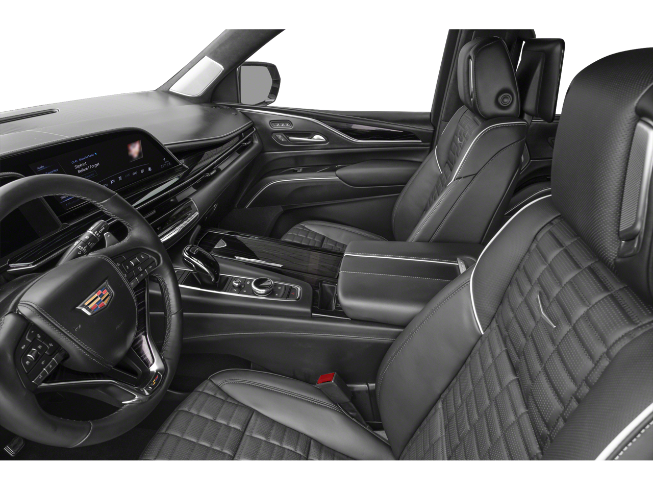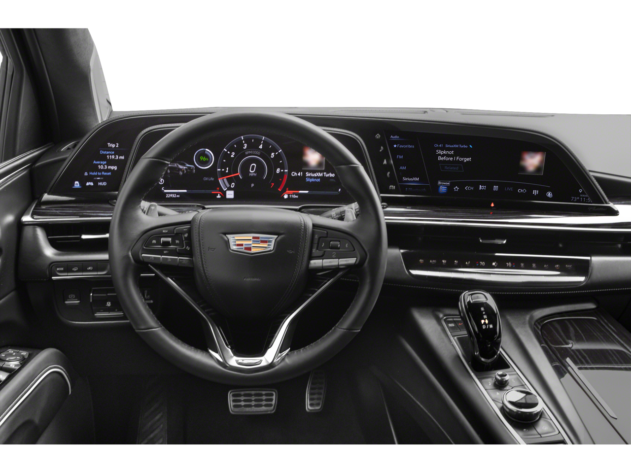 Step inside the luxurious cabin of the Escalade V-Series and be enveloped in a world of refinement. The full semi-aniline leather seating, genuine wood accents, and Platinum interior trim create an ambiance of unparalleled sophistication. Indulge in the convenience of the 16.9 OLED infotainment screen, the Heads-Up Display, and the advanced driver assistance features, including Adaptive Cruise Control and Enhanced Automatic Parking Assist.