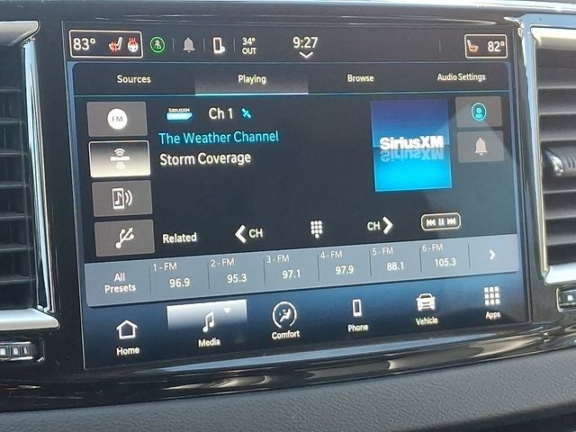 THIS VEHICLE INCLUDES THE FOLLOWING FEATURES AND OPTIONS: Quick Order Package 27L, 10.1 Touchscreen Display, 17 x 7.0 Aluminum Wheels, 3.25 Axle Ratio, 3rd row seats: split-bench, 4-Wheel Disc Brakes, 6 Speakers, ABS brakes, Air Conditioning, Alloy wheels, AM/FM radio: SiriusXM, Apple CarPlay, Apple CarPlay/Android Auto, Automatic temperature control, Black Seats, Brake assist, Bumpers: body-color, Caprice Leatherette Bucket Seats, Compass, Delay-off headlights, Disassociated Touchscreen Display, Driver door bin, Driver vanity mirror, Driver's Seat Mounted Armrest, Dual front impact airbags, Dual front side impact airbags, Electronic Stability Control, Four wheel independent suspension, Front anti-roll bar, Front Bucket Seats, Front dual zone A/C, Front fog lights, Front reading lights, Fully automatic headlights, Google Android Auto, GPS Antenna Input, Heated door mirrors, Heated front seats, Heated steering wheel, Illuminated entry, Integrated Active Noise Cancellation, Integrated Center Stack Radio, Knee airbag, Low tire pressure warning, Manufacturer's Statement of Origin, Memory seat, Occupant sensing airbag, Outside temperature display, Overhead airbag, Overhead console, Panic alarm, ParkView Rear Back-Up Camera, Passenger door bin, Passenger seat mounted armrest, Passenger vanity mirror, Power door mirrors, Power driver seat, Power Liftgate, Power steering, Power windows, Radio data system, Radio: Uconnect 5 w/10.1 Display, Rain sensing wipers, Rear air conditioning, Rear reading lights, Rear window defroster, Rear window wiper, Reclining 3rd row seat, Remote keyless entry, Security system, Speed control, Split folding rear seat, Spoiler, Steering wheel mounted audio controls, Tachometer, Telescoping steering wheel, Tilt steering wheel, Touring Suspension, Traction control, Trip computer, Turn signal indicator mirrors, USB Host Flip, Variably intermittent wipers, and Voltmeter.