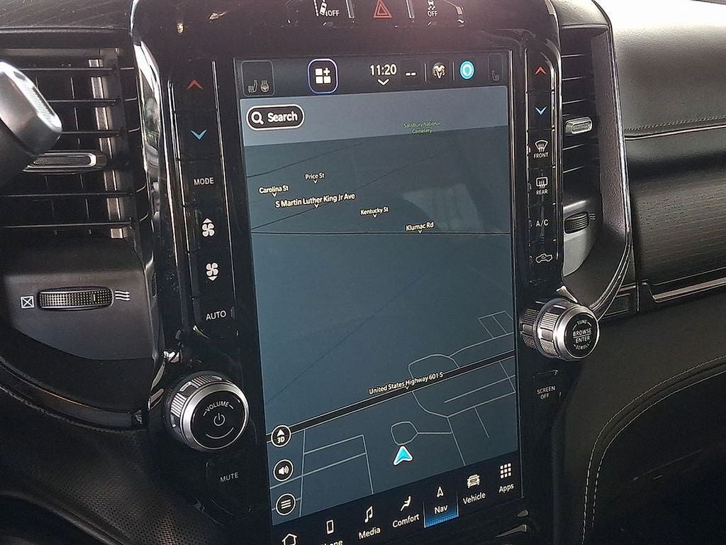 THIS VEHICLE INCLUDES THE FOLLOWING FEATURES AND OPTIONS: Limited Level 1 Equipment Group (12 Touchscreen Display, 17 Speaker harman/kardon Premium Sound, 4G LTE Wi-Fi Hot Spot, Adaptive Cruise Control w/Stop, Adaptive Steering System, Alexa Built-In, Apple CarPlay, Center Hub, Connected Travel & Traffic Services, Connectivity - US/Canada, CTR Stop Lamp w/Cargo View Camera, Digital Rearview Mirror, Disassociated Touchscreen Display, For Details Visit DriveUconnect.com, For More Info, Call 800-643-2112, Full Speed Forward Collision Warning Plus, Global Telematics Box Module (TBM), Google Android Auto, GPS Antenna Input, GPS Navigation, HD Radio, Integrated Voice Command w/Bluetooth®, Lane Keep Assist, LED Bed Lighting, MOPAR Spray In Bedliner, Off-Road Information Pages, Power Deployable Running Boards, Radio: Uconnect 5 Nav w/12.0 Display, Ramcharger Wireless Charging Pad, Selectable Tire Fill Alert, SiriusXM Radio Service, SiriusXM w/360L, Surround View Camera System, Trailer Reverse Guidance, Trailer Tow Pages, and Wheels: 20 x 8.0 Satin Carbon w/Chrome Insert), Night Edition (Black Exterior Truck Badging, Black Headlamp Bezels, Black Limited Grille, Black RAM Head Tailgate Badge, Black Tail Lamp Bezels, Black Wheel Center Hub, Body Color Grille Surround, and Sport Performance Hood), Protection Group, Quick Order Package 21M Limited, 10 Speakers, 220 Amp Alternator, 3.73 Axle Ratio, 4-Wheel Disc Brakes, 50 Gallon Fuel Tank, 5th Wheel/Gooseneck Towing Prep Group, 8.4 Touchscreen Display, ABS brakes, Active Noise Control System, Adjustable pedals, Air Conditioning, Alloy wheels, AM/FM radio: SiriusXM with 360L, Apple CarPlay/Android Auto, Audio memory, Auto High-beam Headlights, Auto Level Rear Air Suspension, Auto-dimming door mirrors, Auto-dimming Rear-View mirror, Automatic temperature control, Bodyside moldings, Brake assist, Bumpers: body-color, Compass, Delay-off headlights, Driver door bin, Driver vanity mirror, Dual front impact airbags, Dual front side impact airbags, Electronic Stability Control, Electronically Controlled Throttle, Front anti-roll bar, Front Bucket Seats, Front Center Armrest w/Storage, Front dual zone A/C, Front fog lights, Front reading lights, Fully automatic headlights, Garage door transmitter, Genuine wood console insert, Genuine wood dashboard insert, Genuine wood door panel insert, Heated door mirrors, Heated front seats, Heated rear seats, Heated steering wheel, Illuminated entry, Instrument Cluster Theme 8, Integrated Center Stack Radio, Leather steering wheel, Limited Leather Bucket Seats, Low tire pressure warning, Luxury Door Trim Panel (CTH), Memory seat, Navigation System, Occupant sensing airbag, Outside temperature display, Overhead airbag, Overhead console, Panic alarm, ParkView Rear Back-Up Camera, Passenger door bin, Passenger vanity mirror, Pedal memory, Power door mirrors, Power driver seat, Power passenger seat, Power steering, Power windows, Radio data system, Radio: Uconnect 5 Nav w/8.4 Display, Rain sensing wipers, Rear reading lights, Rear seat center armrest, Rear step bumper, Rear window defroster, Remote keyless entry, Security system, Speed control, Split folding rear seat, Steering wheel mounted audio controls, Tachometer, Tilt steering wheel, Tip Start, Traction control, Trip computer, Turn signal indicator mirrors, Variably intermittent wipers, Ventilated front seats, Voltmeter, Wheels: 20 x 8.0 Cast Aluminum Black, and Wheels: 20 x 8.0 Diamond Cut Face Aluminum. Odometer is 3075 miles below market average!