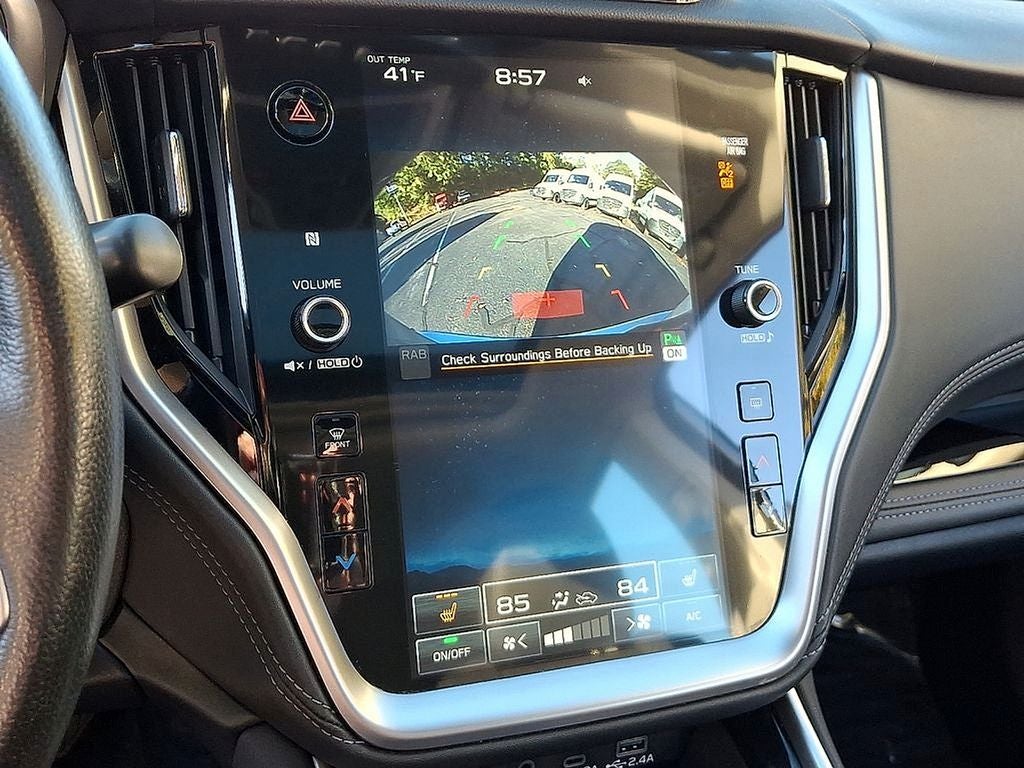 THIS VEHICLE INCLUDES THE FOLLOWING FEATURES AND OPTIONS: Moonroof & Nav & Heated Steering Whl & DriverFocus (360 Degrees Heated Steering Wheel, Driver Monitoring System (DMS)/DriverFocus, Power Moonroof, and Radio: Subaru STARLINK 11.6 Multimedia Nav System), 12 Speakers, 4-Wheel Disc Brakes, ABS brakes, Air Conditioning, Alloy wheels, AM/FM radio: SiriusXM with 360L, Anti-whiplash front head restraints, Auto High-beam Headlights, Auto-dimming Rear-View mirror, Automatic temperature control, Brake assist, Bumpers: body-color, Compass, Driver door bin, Driver vanity mirror, Dual front impact airbags, Dual front side impact airbags, Electronic Stability Control, Emergency communication system: STARLINK Safety Plus (3-year free trial), Exterior Parking Camera Rear, Four wheel independent suspension, Front anti-roll bar, Front Bucket Seats, Front Center Armrest w/Storage, Front dual zone A/C, Front fog lights, Front reading lights, Fully automatic headlights, Garage door transmitter: HomeLink, harman/kardon® Speakers, Heated door mirrors, Heated Front Bucket Seats, Heated front seats, Heated rear seats, Illuminated entry, Knee airbag, Leather steering wheel, Low tire pressure warning, Memory seat, Occupant sensing airbag, Outside temperature display, Overhead airbag, Overhead console, Panic alarm, Passenger door bin, Passenger vanity mirror, Perforated Leather-Trimmed Upholstery, Power door mirrors, Power driver seat, Power passenger seat, Power steering, Power windows, Radio: Subaru STARLINK 11.6 Multimedia Plus Sys, Rear anti-roll bar, Rear seat center armrest, Rear window defroster, Remote keyless entry, Security system, Speed control, Speed-sensing steering, Split folding rear seat, Steering wheel mounted audio controls, Tachometer, Telescoping steering wheel, Tilt steering wheel, Traction control, Trip computer, Turn signal indicator mirrors, Variably intermittent wipers, and Wheels: 18 x 7.5J Gray Mach Finish Aluminum-Alloy. 27/35 City/Highway MPG